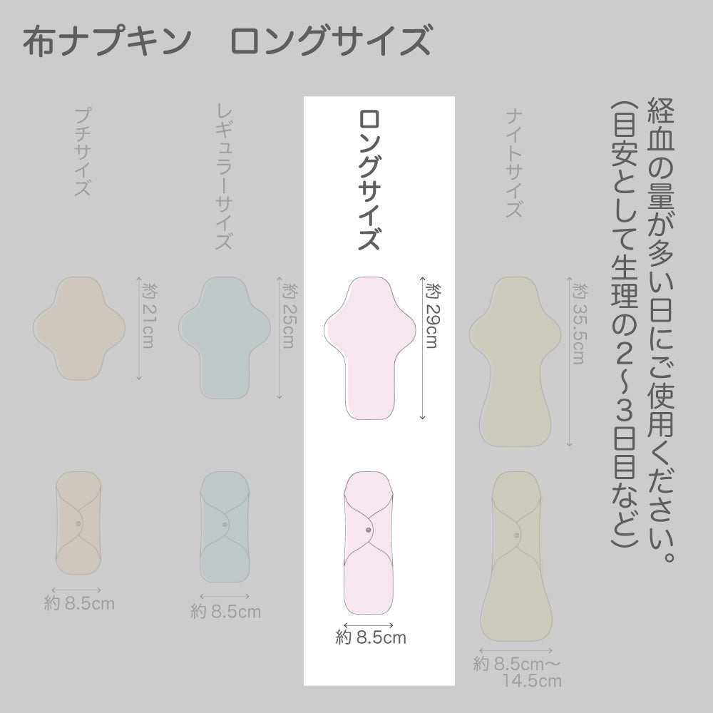 多い日用の布ナプキンになります。経血の多い日などの経血の状態に合わせてご使用ください。(防水布入)